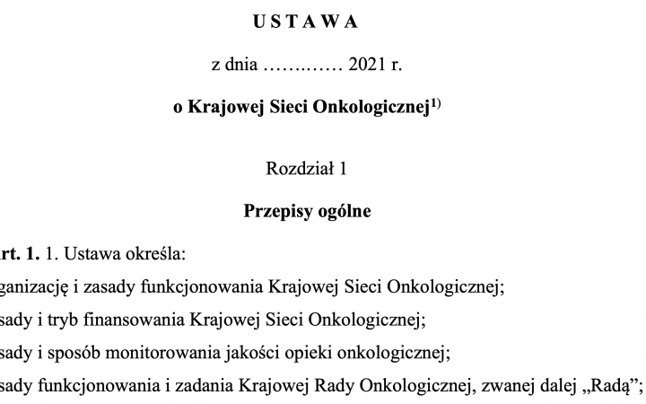 Wdrożenie Krajowej Sieci Onkologicznej jest jednym z kluczowych elementów przewidzianych w ramach Narodowej Strategii Onkologicznej przyjętej zgodnie z regulacjami ustawy o Narodowej Strategii